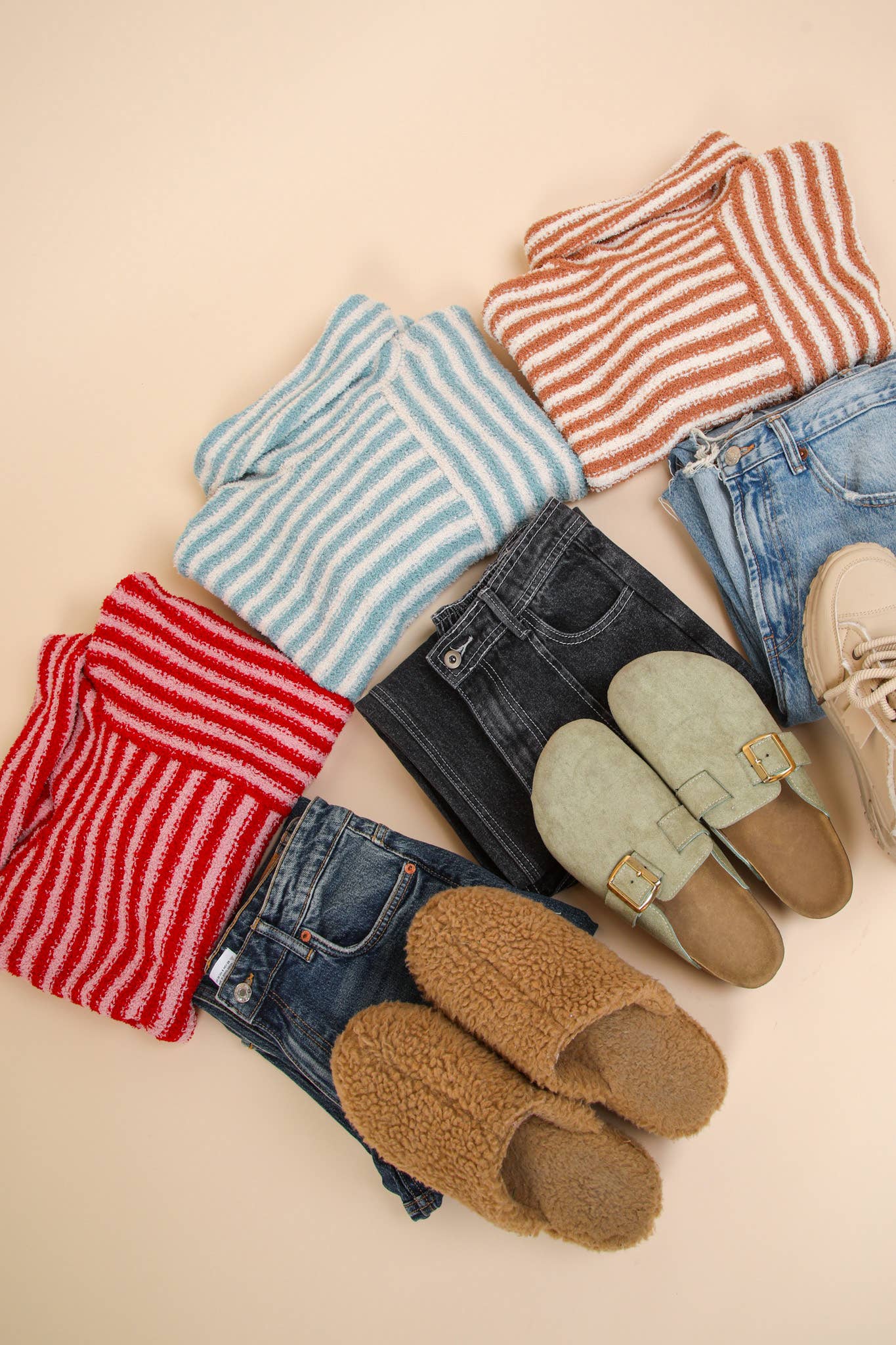 12W3186N-Mock Neck Soft Striped Knit Sweater Top